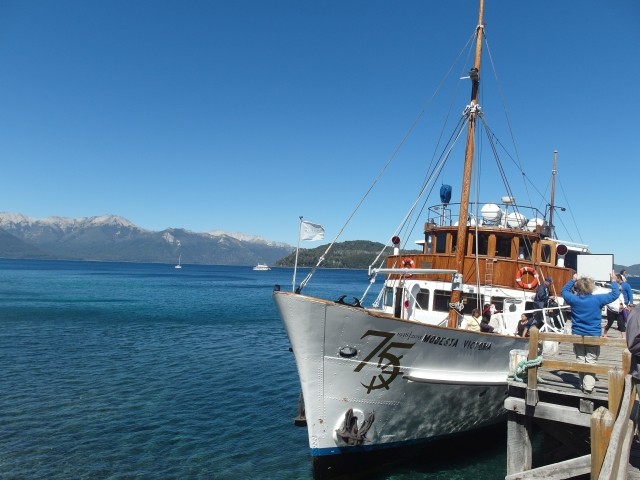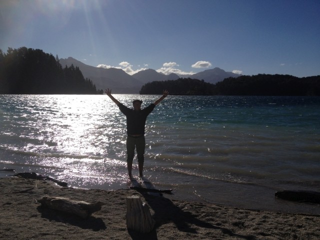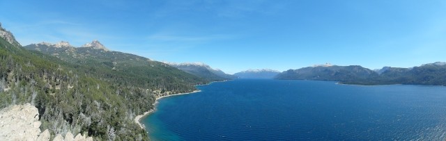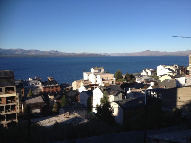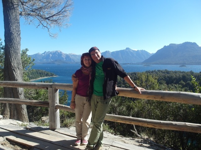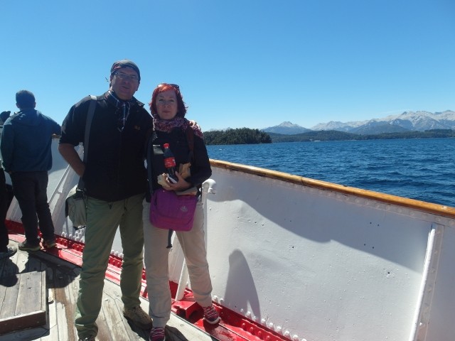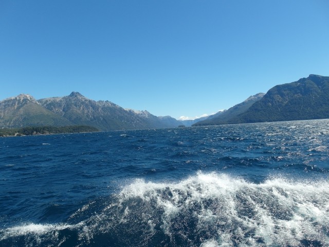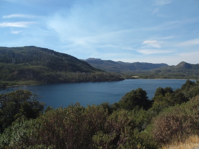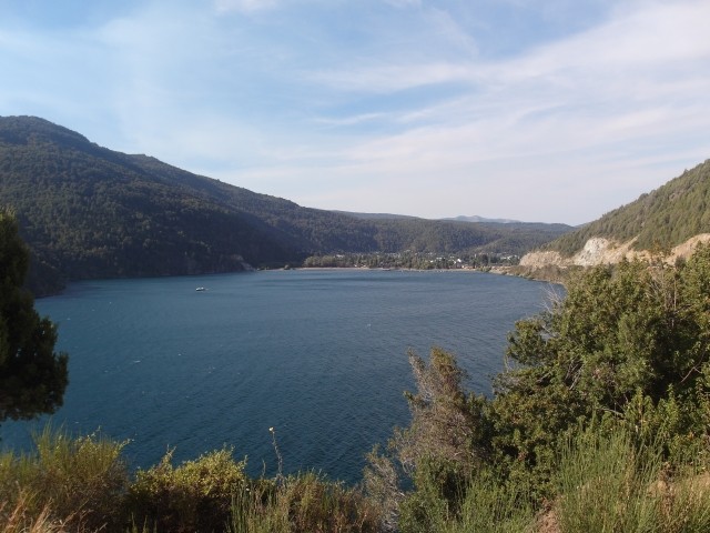 Alles sehr lieblich und ruhig hier. Und dann ging es wieder zurück. Aber ein beschaulicher Ausflug ohne Abenteuer ist mit Dieter ja nicht zu haben. Also machten wir kurz vor San Martín noch einen Abstecher zum Mirador Bandurrias. Die Straße dorthin war noch mindestens zwei Kategorien schlechter als die Schotterpiste der RP. Zweimal kamen uns ein Traktor und ein LKW entgegen. Mir stockte jedes Mal der Atem, aber Dieter meisterte das Ausweichmanöver souverän. Und die Aussicht auf den Lago Lácar war dann wirklich grandios. Völlig verstaubt kamen wir gegen 18 Uhr zum Hotel zurück. Bravo Chevi, du hast gut durchgehalten!