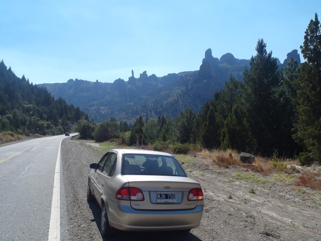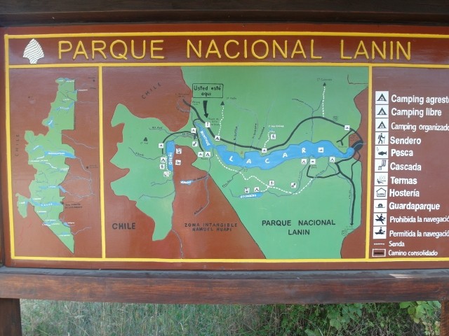Um halb drei holperten wir in unserem Chevi weiter. Die Grenze war unspektakulär: eine Schranke, ein Häuschen und dahinter lag dann Chile. Die Straße dort drüben sah noch schlechter aus als die auf der argentinischen Seite. Wir kehrten um und kamen am Ausflugslokal Hua Hum vorbei, wo ein- oder zweimal am Tag sogar ein Bus verkehrt.