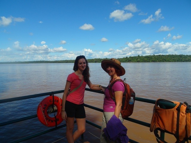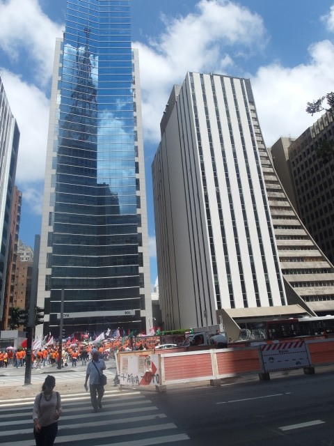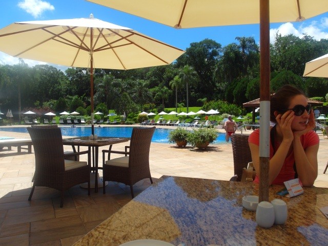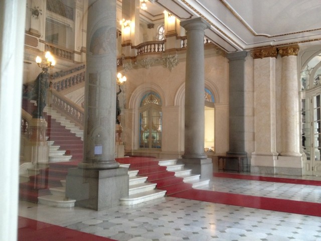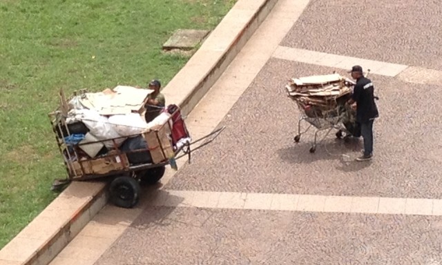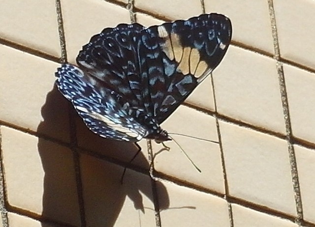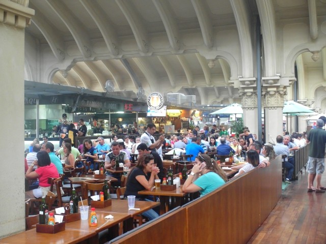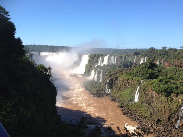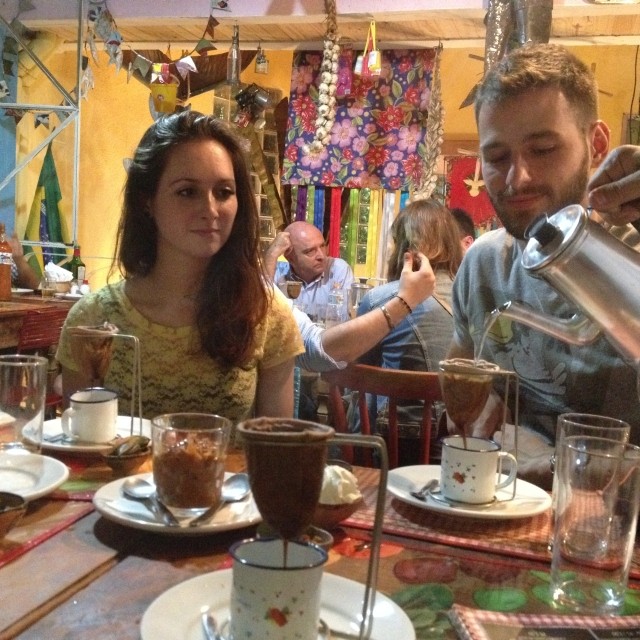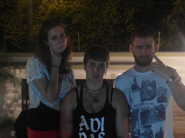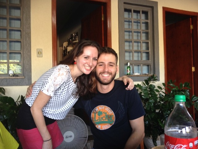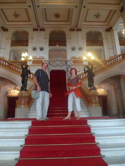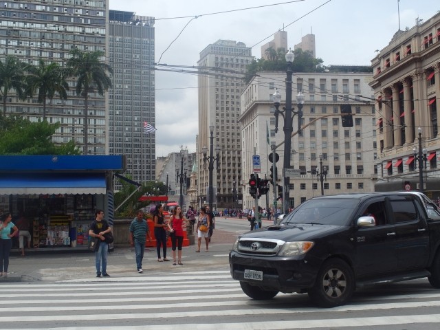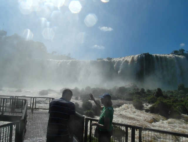 Wir konnten uns gar nicht satt sehen an den bunten Fliesen – es sollen über 2000 sein – wir entdeckten Hamburg, Berlin mehrfach, Quickborn – und plötzlich waren auch die Seitenwände gefliest. Man konnte darauf beliebig herumklettern, posieren und immer wieder staunen. Wir schlenderten weiter durch die Straßen, es ging wieder aufwärts, um Kurven herum, wir kamen durch eine Gegend, wo keine Touristen mehr unterwegs waren. Ein Bewaffneter stand mit einem Maschinengewehr an einer Ecke, er schien sich aber nicht über uns zu wundern. Links unten sahen wir eine Fawela, okay. Wir stiefelten weiter und kamen an einem wunderschönen Restaurant mit Aussicht vorbei. Obwohl heute Marlenes Geburtstag war, war es uns dort zu teuer, ohne sie zu feiern, und wir wanderten den Berg wieder hinunter. Es war schwierig, ein weiteres im Reiseführer empfohlenes Lokal zu finden. Nach einem zweistündigen Fußmarsch hatten wir es endlich geschafft. Wir ließen uns in einer netten Pizzeria nieder, wo mehrere brasilianische Familien sich zum Abendessen eingefunden hatten und verspeisten riesige, für eine Person viel zu große Pizzen, so gut wir halt konnten. Es hatte inzwischen angefangen zu regnen, wir saßen im Trockenen. Gelaufen waren wir für heute genug. Wir wollten ein Taxi zurück nehmen. Zwei Taxis wollten uns nicht fahren, nachdem wir den Fahrern die Adresse vor die Nase gehalten hatten. Sowas! Wir wussten nicht, warum. Beim dritten Versuch klappte es zum Glück und Dieter stellte zur Kontrolle sein Navi ein. Auf unserer schönen Dachterrasse ließen wir den Tag ausklingen.