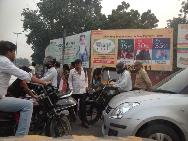 Trotzdem wartete in Agra der bestellte Taxifahrer auf uns. Agra erschien uns nach einem ersten, oberflächlichen Blick moderner, reicher, auch sauberer, als alles, was wir bisher von Indien gesehen hatten. Mit Ausnahme des Verkehrs.