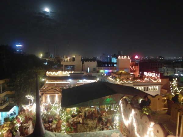 Um halb sechs kamen wir in einem schönen Haveli in Jaipur an. Es war die ganze Zeit auf einer vierspurigen asphaltierten Straße immer geradeaus gegangen. Lal hätte sich gefreut. Und Jaipur ist die erste, richtig moderne, indische Stadt, in der wir sind. Klar, es gibt auch Kühe und Arme, die in Slums und auf der Straße schlafen, aber es gibt eine Menge Geschäfte, die hinter Glas sind und richtige Einkaufszentren. Wir würden auf den ersten Blick nicht erkennen, dass wir uns in Indien befinden. Wir haben uns zum Abendessen von einem Rikscha-Fahrer gleich zu dem vielleicht schönsten Roof-Top-Restaurant der Stadt fahren lassen. Den Tipp hatten wir aus dem Reiseführer. Ein Volltreffer!