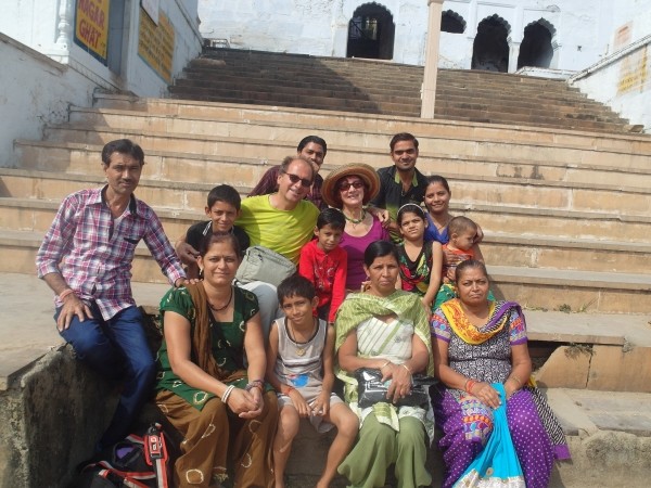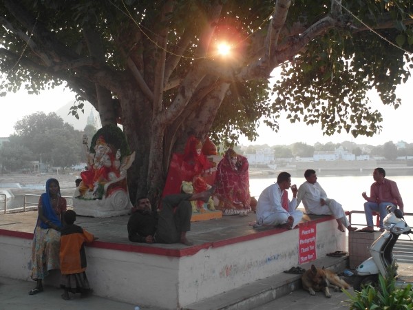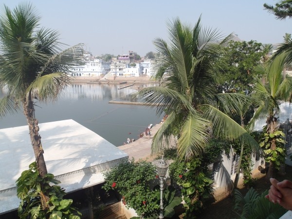 Ein Traum: direkt am Puschkar-See gelegen. Einmal wollten wir uns das gönnen. Für eine Übernachtung 80 Euro, ist ja für europäische Verhältnisse nicht viel. Es dürfte unsere teuerste Pension bleiben. Der Legende nach hat der Hindu-Gott Brahma an dieser Stelle ein Lotusblatt fallen lassen, woraufhin der See am Rande einer Wüstengegend entstanden ist. Dann wurde auch noch eine Versammlung aller Götter hier abgehalten, weil es Unstimmigkeiten bei der Hochzeit von Brahma gab, der zu einem ganz bestimmten, astrologisch berechneten Zeitpunkt Savitri heiraten wollte. Savitri war aber so mit Garderobe und Kosmetik beschäftigt, dass sie nicht rechtzeitig eintraf. Da hatte Brahma schon das einzig unverheiratete Mädchen der Region zur Frau genommen. Das vergrätzte Savitri verständlicher Weise. Der Götterrat gestand ihr daraufhin einen eigenen Tempel auf dem höchsten Berg der Umgebung zu. Die Zweitfrau, Gayitri, bekam einen eigenen Tempel auf einem niedrigeren Berg zugesprochen, und Pilger müssen zuerst Savitris und dann Gayitris Haus besuchen. Die Tempel im Ort hatten wir schnell abgegrast.