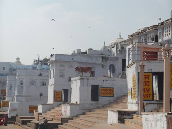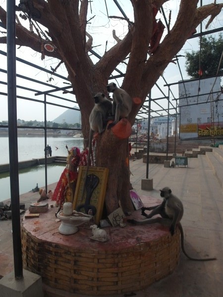 Am See gab es wieder verschiedene Ghats. Aufgrund der Göttergeschichte ist es ein hochheiliger See. Ghandis und Nehrus Asche wurde hier verstreut, und natürlich reinigen sich gläubige Hindus in der Brühe, neben Affen und Kühen. Trotz der Warnungen unseres Fahrers und unseres Reiseführers sind wir unbehelligt von lästigen Spendeneintreibern an den Ghats spazieren gegangen und haben das uns so fremde, selbstverständliche und enge Miteinander von Tier und Mensch beobachten können.
