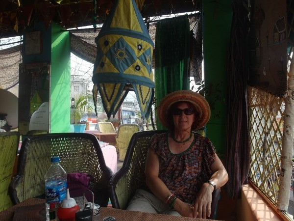 Zum Lunch waren wir im Hardrock-Cafe. Dort konnten wir das kleinstädtische Treiben von der Dachterrasse aus genießen. Das Café wird von einem Inder mexikanischen Ursprungs betrieben, der sich freundlich zu uns setzte und uns für heute Abend zur Jam-Session einlud. So beschaulich hatten wir Indien noch nicht erlebt! Selbst auf der langen Bazarstraße konnten wir uns zum ersten Mal in Ruhe ein paar Dinge anschauen. Shoppen kann Spaß machen! Hab’ mir in Erinnerung an alte Zeiten gleich’ ne indische Walla-Walla-Bluse gekauft, nichts Aufregendes, aber immer in den gleichen T-Shirts, das musste jetzt mal aufhören!