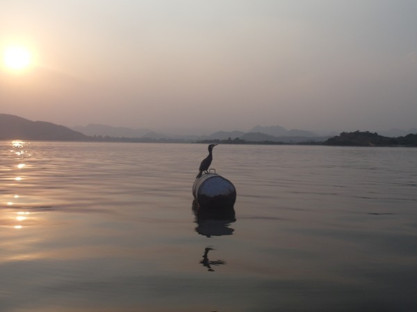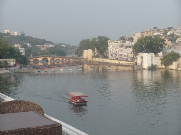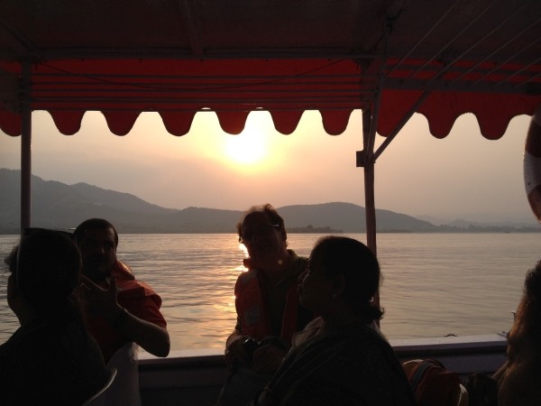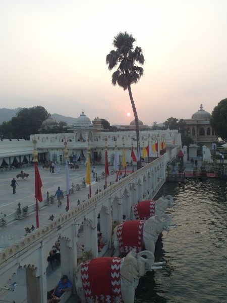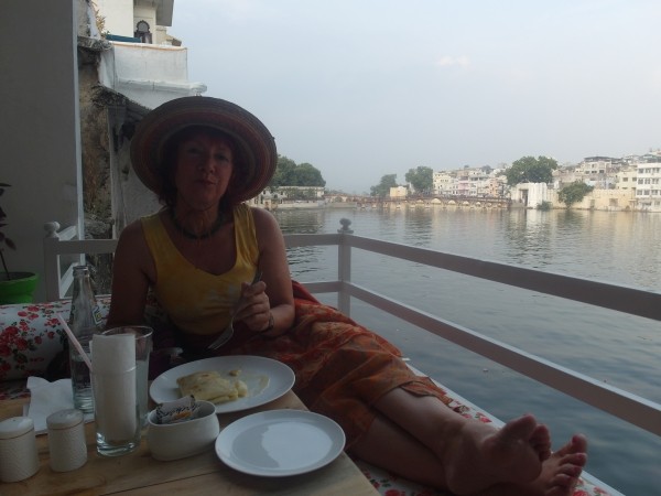 An eine üble Geschichte aus dem 19. Jahrhundert wurde erinnert. Der Maharani hatte sich missverständlich ausgedrückt und seine überaus schöne Tochter sowohl dem Prinzen von Jaipur als auch dem Prinzen von Jodhpur als Gemahlin in Aussicht gestellt. Beide zukünftigen Bräutigame trafen in freudiger Hochzeitserwartung mit ihrem Hofstaat ein. Um Krieg zu vermeiden, ließ der verzweifelte Vater seine Tochter vergiften. Dreimal überlebte die Arme den Anschlag. Erst nach einer Überdosis Opium sei sie nicht mehr aufgewacht. Die heiße Mittagszeit verbrachten wir in unserer schönen Suite. Da heute unser letzter Tag in Udaipur sein würde, hatten wir am gegenüber liegenden Ufer in einem einladenden Restaurant direkt am See einen Tisch zum Dinner bestellt. Auf dem Weg dorthin fing es plötzlich an zu regnen. Potzblitz, das hatten wir schon seit Nepal nicht mehr! Wir mussten uns unterstellen. Über eine Stunde schüttete es, Gewitter und Stromausfall inklusive. Immer wieder ging das Licht aus im schönen Udaipur auf der anderen Seite des Sees.