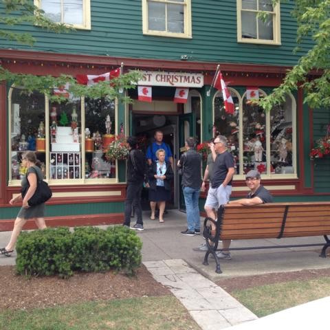 Um 8:15 Uhr hält ein kleiner Bus direkt vor unserer Pension. Fahrer ist ein Mister Scott, dem eine fette Wampe über die Hose hängt. Nachdem etwa 20 Touris eingesammelt sind, fordert Scott alle energisch auf, zu sagen, aus welchem Land sie kommen. Sein militärisch distanzloser Ton behagt mir gar nicht. Dennoch, alle beugen sich dem Befehl dieses Guides und antworten brav. Immerhin wissen wir nun, dass wir Mexikaner, Franzosen, eine iranische Familie, Kanadier, US-Amerikaner und Italiener dabei haben, wir sind die einzigen Deutschen. Scott redet die ganze Zeit, er erzählt, er lacht, ab und zu singt er auch – seine Stimme ist nicht schlecht, das muss ich ihm lassen. Wir fahren durchs Gayviertel.Überall ist der bunte Regenbogen zu sehen, sogar an den Bushaltestellen. Scott versucht unsere Begeisterung für ein Gewinnspiel zu wecken. Er werde im Laufe der Fahrt drei Fragen stellen. Wer sie richtig beantwortet, werde bei der Weinprobe, die zum Programm gehört, einen von ihm persönlich spendierten Preis bekommen. Wahnsinn! Ich versuche angestrengt, nicht nur negativ über diesen Menschen zu denken. Er macht hier seinen Job, so what? An der Windschutzscheibe hängt ein Schild, dass die Guides sich sehr über ein Trinkgeld freuen würden, nein, stimmt gar nicht, da steht, dass es üblich ist, 10-15 Prozent dem Fahrer zu geben, damit sie gut über die Runden kommen. Können die nicht gleich ordentlich bezahlt werden? Die Weinprobe wird in einer halben Stunde durchgezogen. Zwei junge Frauen sagen geschäftstüchtig ihre Sprüche auf, es wird ein weißer Riesling und ein roter Cabernet/Merlot angeboten. Der rote schmeckt, wir nehmen eine Flasche für abends mit. Nächster Stopp ist in Niagara-on-the-Lake. Scott kündigt verheißungsvoll die absolute Attraktion dieses Städtchens an: ein Geschäft namens “Just Christmas”. Wow!