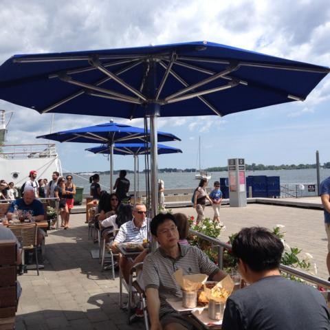 Den Rest der Zeit haben wir uns in ein Café mit direktem Blick auf den amerikanischen Niagarafall gesetzt, mit zwei Frauen geklönt – die Eine Schwedin, die Andere Kanadierin – und dann sind wir zurück zu “under the bridge”.