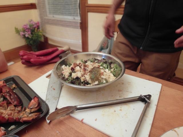 Gegen 21 Uhr verspeisen wir gegrillten Lobster. Es ist und bleibt eine vorzügliche Delikatesse. Annie hat noch einen Salat, Zitrone, Koriander und Knoblauchbutter dazugestellt und natürlich ihr wunderbares, selbstgebackenes Brot, und wir genießen zusammen einen netten, geselligen Lobsterabend.
