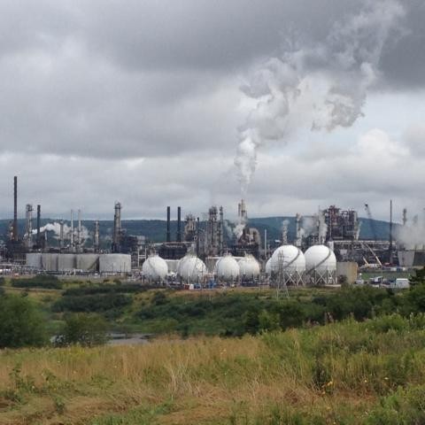 Am Ende des Trails gibt es einen Fußweg von etwa 700 Metern zu einem Wasserfall. Den wollen wir nehmen. Es geht allerdings gleich steil abwärts, der Regen hat zugenommen, die Gefahr, dass wir ausrutschen, ist zu groß. Wir lassen es. Gegen halb fünf verlassen wir den Fundy Trail Park, passieren noch einmal den kleinen, beschaulichen Hafen von Saint Martins mit seinem dazugehörenden einladenden Lobsterrestaurant, widerstehen der Versuchung, dort einzukehren und fahren stattdessen die 60 Kilometer nach Saint John weiter, Hauptstadt und wirtschaftliches Zentrum von Brunswick, mit etwa 125000 Einwohnern. Morgen wird Marcel von hier aus nach Toronto fliegen und allein weiterreisen. Gleich zu Beginn kommen wir am riesigen Irving-Öl-und-Gaskonzern mit seinen unvermeidlich dampfenden Schloten vorbei.