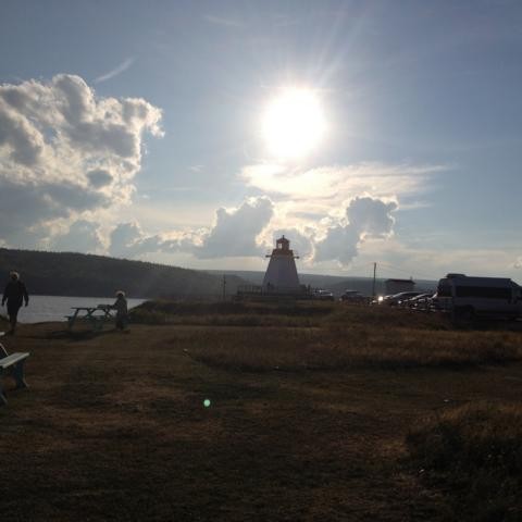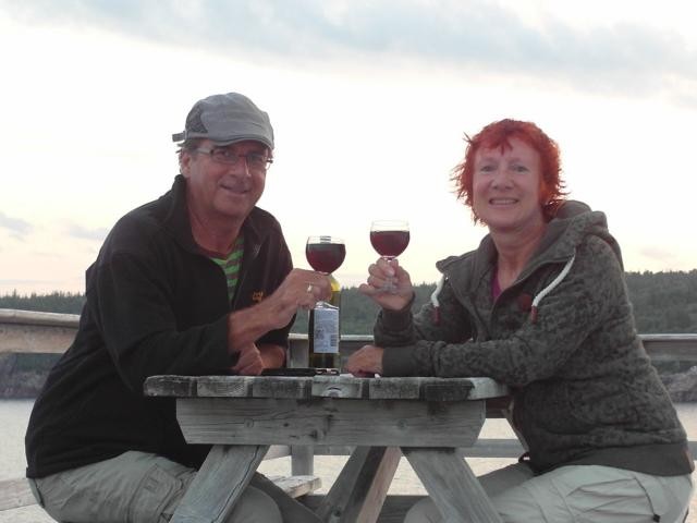 Wir sind uns einig, dass wir auf Capri und an der Amalfiküste schon spektakulärere Höhenwege gewandert sind. Danach fahren wir den Cabot Trail zurück und baden zum ersten Mal direkt bei uns vor der Haustür im Atlantik. Es ist ein weicher und fast menschenleerer Sandstrand, das Wasser läuft gerade aus einer sich anschließenden Lagune ab, also Ebbe. Herrlich erfrischend und überhaupt nicht kalt. Abends gehen wir in unserem Chowder House gegenüber, das heute geöffnet hat, essen und noch später trinken wir ein Gläschen Wein, oder auch zwei, unter unserem total niedlichen Leuchtturm. Es ist absolut romantisch.