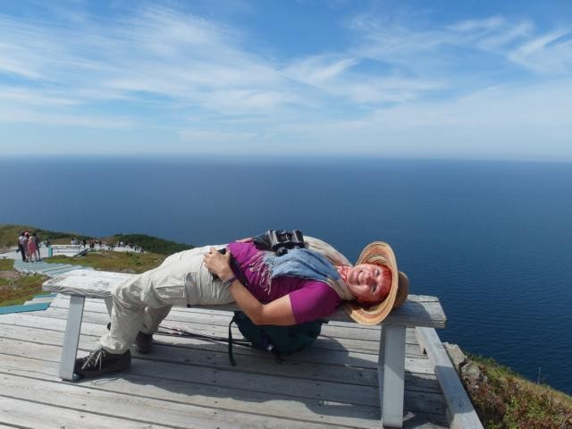 Eigentlich wollten wir heute schon um acht Uhr losfahren, zum Skyline Trail, dem berühmtesten und beliebtesten Wanderweg im Cape-Breton-Nationalpark. Wir waren auch zeitig mit allem fertig, doch dann setze ich mich nur kurz in einen der zwei kanadischen Stühle, die vor Joannes Haus stehen, schaue aufs Meer, Dieter setzt sich in den anderen, dann kommen Joanne und ihre Schwester rüber, und wir klönen uns fest.