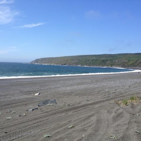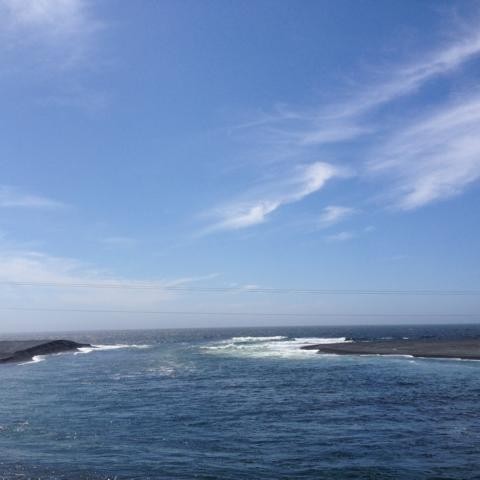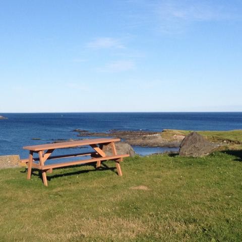 Auf der einen Seite rauscht das Meer, auf der anderen, durch einen Damm abgetrennt, liegt der stille Pond. Um ein Uhr erreichen wir an der Trepassey Bay das wohl einzige und exponiert gelegene Lokal “Irish Loop Edge Inn”, wo wir mit Blick aufs Meer zu Mittag essen. Dann wechseln wir, und ich fahre weiter. Die Landschaft heißt hier nicht nur irisch, sie ist auch Irlands Küste sehr ähnlich: grüne Wiesen, blaues Meer und immer wieder tiefblaue Tümpel in den Wiesen. Und da hinten, endlich! auch ein paar Schafe. Wir umfahren das flache, einsame Portugal Cove.