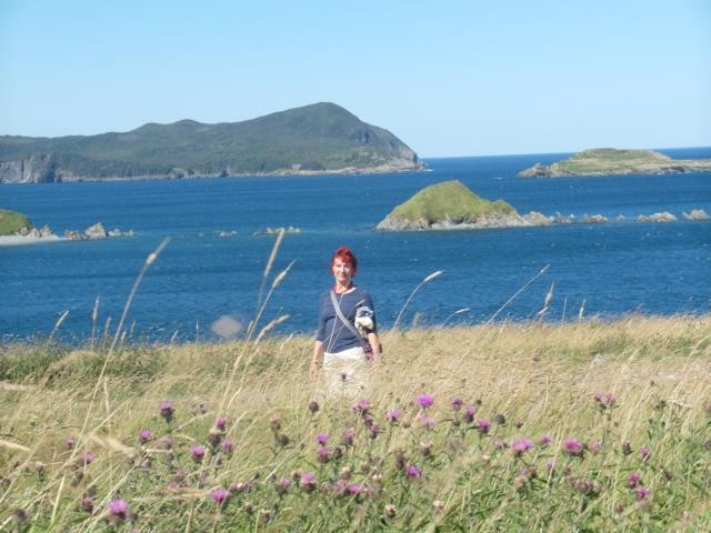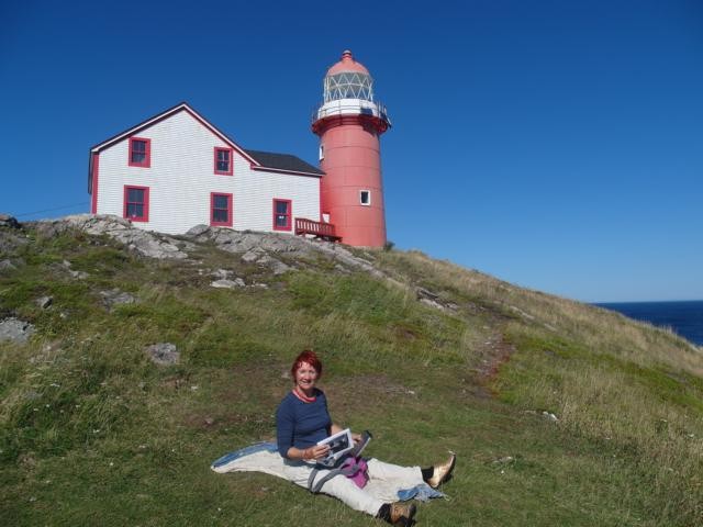 Beim Mistaken Point halten wir bei einem Interpretative Centre an, man möchte uns sogleich über die Fossilienfunde in dieser Gegend mit einem Videovortrag informieren, aber wir sind noch nicht so weit, können uns noch gar nicht so recht einlassen auf die ganz sicher hochinteressanten Spezialinformationen, wir sind doch gerade erst auf Neufundland angekommen! Längst hat der Nebel sich verzogen, und die Sonne knallt vom Himmel. Wir fahren die Ostküste der Avalon-Peninsula hoch, es wird touristischer aber auch hügeliger und landschaftlich reizvoller. Wir kommen nach Ferryland, müssen uns nach den langen Fahrten mit Fähre und Auto ein bisschen bewegen, laufen die zwei Kilometer zum Leuchtturm hoch, schwitzen, aber zum Glück weht ein kräftiger, warmer Wind. Wir legen uns ins Gras. Es ist atemberaubend schön hier.