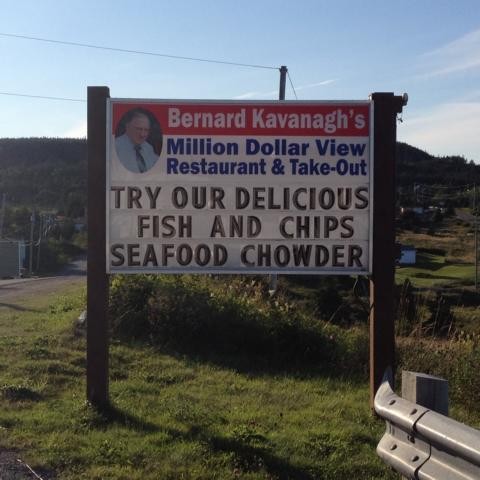 Heute sind nur wenige Menschen hier, wahrscheinlich weil Montag ist und die Lokale geschlossen haben, die sonst originelle Picknicke für Touristen am Leuchtturm anbieten. Dieter entdeckt Wale im Wasser, doch leider haben wir unsere Ferngläser im Auto vergessen. Wir wandern zum Auto zurück. Nach nur wenigen Kilometern brauchen wir eine kleine Trinkpause im “Irish Loop Drive”- Restaurant. Ein Herr will uns sofort seinen Platz am Fenster anbieten. Wir lehnen dankend ab, wir sind ja nur für ‘ne Cola hier. Wir sehen, dass es unten im Meer von aufsteigenden Walfontänen geradezu wimmelt. Sagenhaft! Hierher müssen wir unbedingt noch einmal zurückkommen. Beim Verlassen des Lokals erkennt Dieter den Herrn, der uns so freundlich seinen Platz angeboten hat, auf verschiedenen Zeitungsanzeigen – unter anderem auf einem Foto mit Herrn Trudeau – als den Besitzer dieses “Million Dollar View”-Restaurants, wie es draußen auf einem Schild heißt. Vielleicht hätten wir sein Angebot doch annehmen und ein bisschen mit ihm klönen sollen? Wäre sicher interessant gewesen.