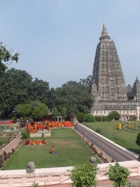 Hatte gestern bis halb zwei am Blog-Beitrag geschrieben. Als ich gerade fertig war, habe ich alles gelöscht. Na super! Frust auf ganzer Linie! Heute Morgen alles von vorn. Sightseeing-Start daher erst um halb elf. Zum Mahabodhi-Tempel, wo Buddha unter einem Bodhi-Baum Erleuchtung fand. Höchstes Heiligtum des Buddhismus. Als wir ankamen, fand gerade eine Predigt mit Lautsprecherverstärkung statt. Leider nicht auf Englisch. Schade!