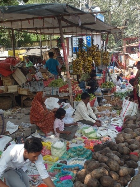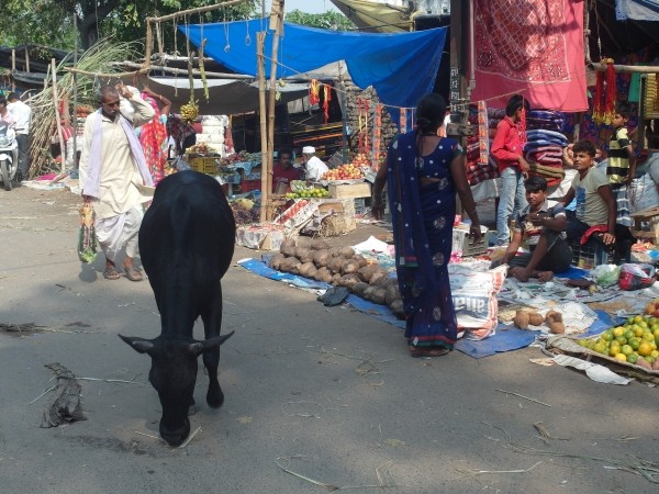 Wir wollten noch zum Hauptpostamt. Wie dumm von uns. Hatte natürlich am Feiertag geschlossen. Dafür hatten wir das Vergnügen, über Bodhgayas wichtigsten Markt laufen zu können.