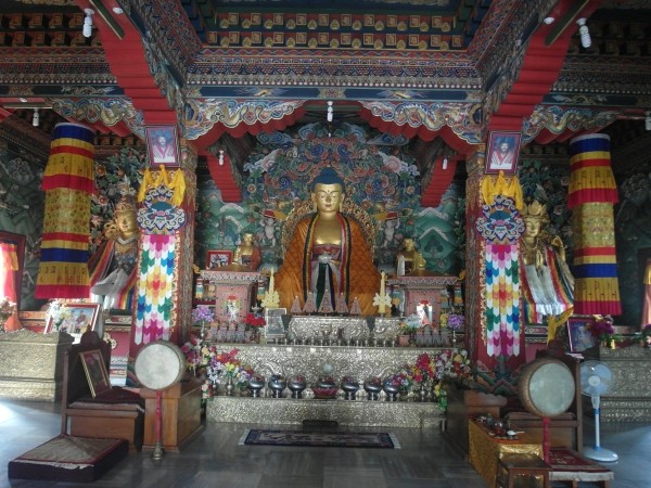 Zierlich, klein und geradezu niedlich dagegen der reich geschmückte und filigran verzierte Bhutan-Tempel. Die Lebensgeschichte Buddhas wurde als Stuck an den Wänden dargestellt. Was für eine kunstvolle Handarbeit! Vor jedem Tempel sitzen Bettler und Schuhaufpasser, für die man die schon erwähnten kleinen Rupienscheine immer parat haben muss.