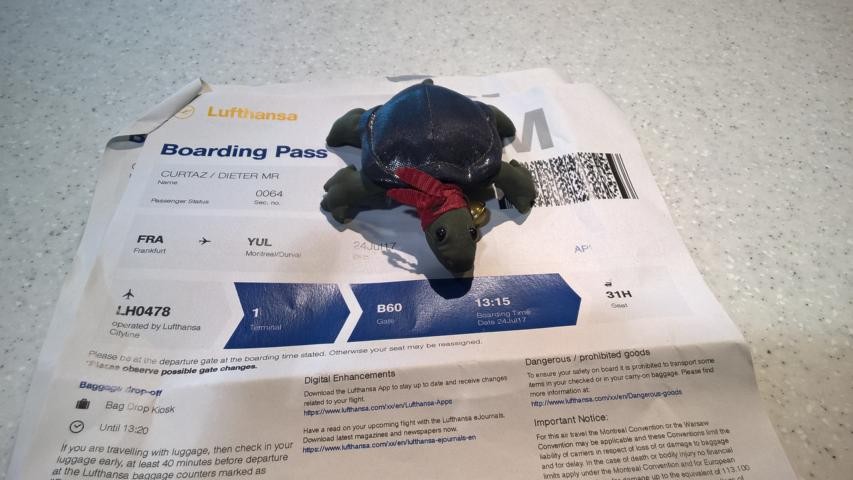 Von Frankfurt geht es mit einer halben Stunde Verspätung, um halb drei, weiter. Auf nach Montréal! Einatmen, ausatmen, schlafen.