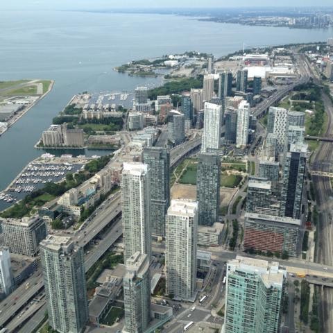Jetzt liegen die Wolkenkratzer unter uns, wir blicken von oben auf sie und auf den kleinen Flughafen auf der Torontoinsel hinab, wo im 15-Minutentakt Flieger starten und landen. Toronto sieht von hier aus wie eine Spielzeugstadt im Miniaturwunderland.